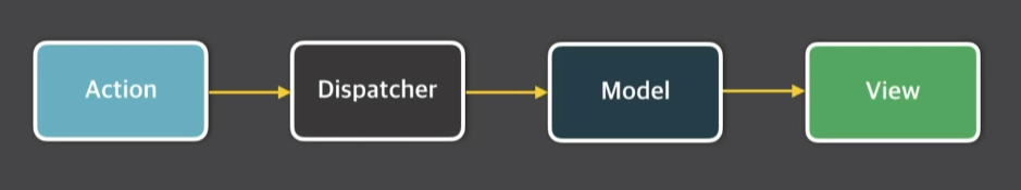 - dispatcher : 데이터를 변경하는 방법, 메서드 (모델을 바꾸기 위한 방법)