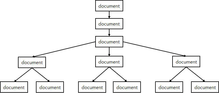 DOM은 웹 애플리케이션을 구성하는 요소를 조작할 수 있는 API입니다. HTML 페이지는 트리로 구성되는데 아래와 같은 HTML 코드는 다음과 같은 DOM으로 표현됩니다.