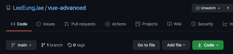 - 그러면 다음과 같이 자신의 계정으로 된 저장소에 Fork한 프로젝트가 생성된다.